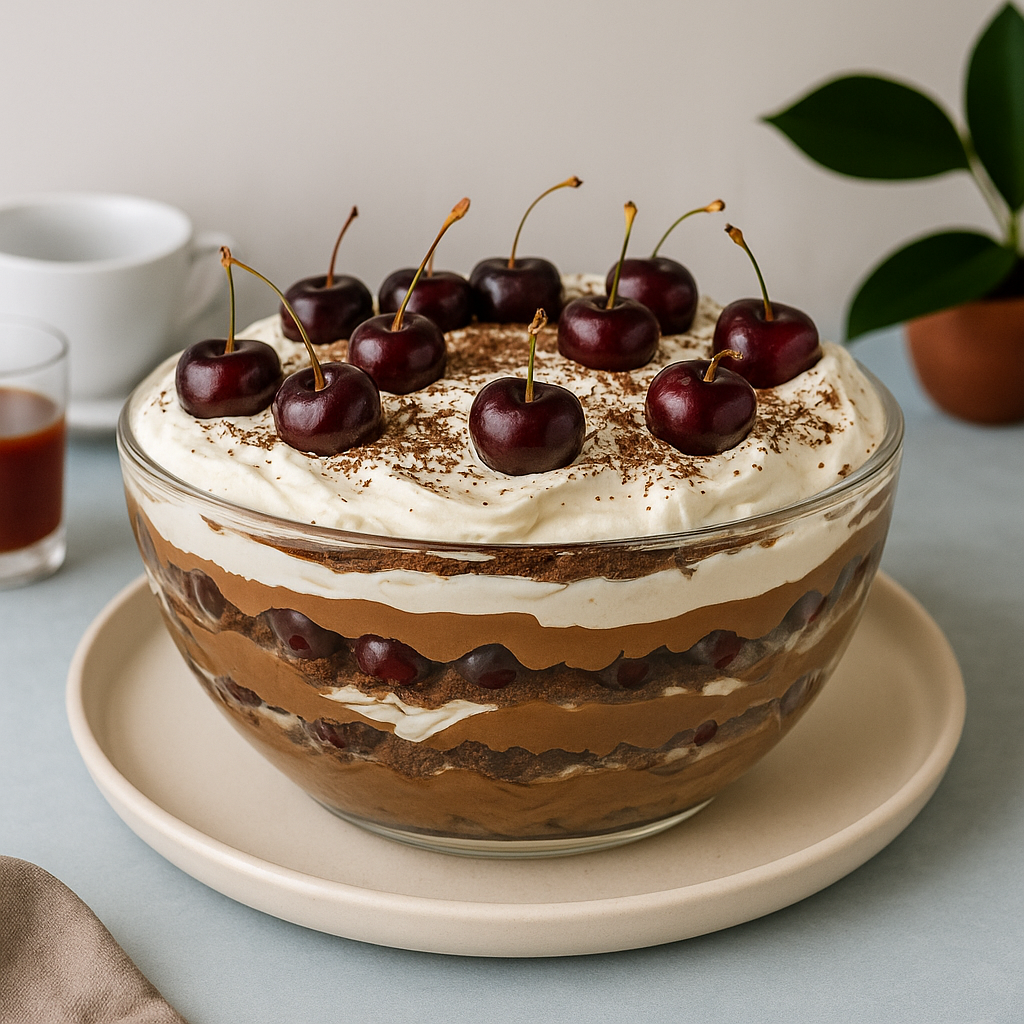 Layers of Chocolate Cake, Cherries and Chantilly Cream.